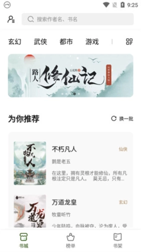进入后,简洁清爽的使用界面便映入眼帘,各类丰富的小说题材类型也能让人一目了然。