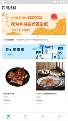 好四川扶贫,打开软件,软件首页都是四川农家自制的一些食品,大家可以根据自己的需求购买。