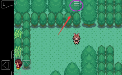 在手机上打开“myboy模拟器”,启动游戏后,点击上方的【三条杠】图标。