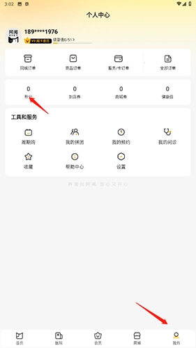 打开软件后,点击底部的“我的”选项,接着点击“积分”选项。