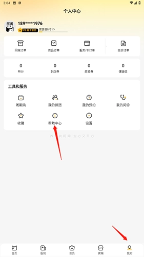 打开软件后,点击底部的“我的”选项,接着点击“帮助中心”选项。