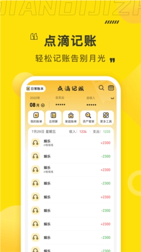 点滴记账是南京宣宝网络科技有限公司推出的一款记账类手机应用,它能协助用户记录每日的收入与支出情况。这款软件记账效率高,还能生成清晰明了的报表,让用户对自身消费状况了如指掌,从而更轻松地进行理财。无论是学生日常记账、旅行期间记账、生意往来记账、生活日常开销记账,还是装修费用记账,它都能派上用场,帮助用户合理规划消费,确保每一笔收支都有迹可循。