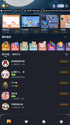在对玩消息模块里,能查看自己的好友是否在线,还可以和他们一起聊天。