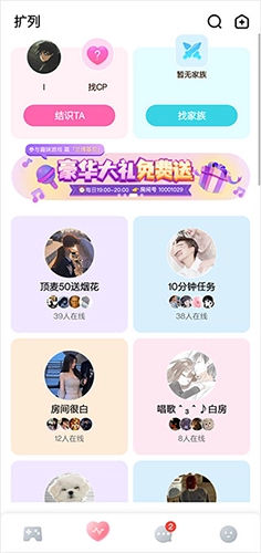 在对玩扩列模块可以找到很多的小伙伴,组cp等等;