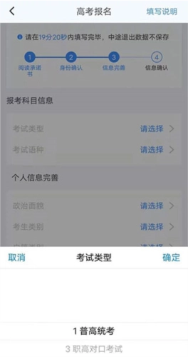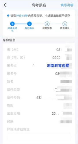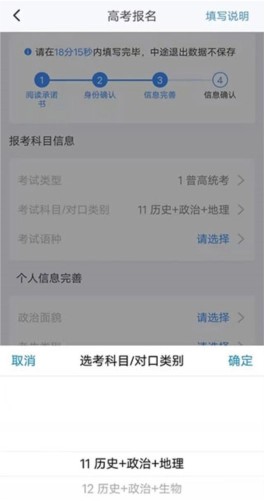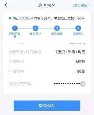 选择高考报名,看到提示需要在指定时间内填写完毕;