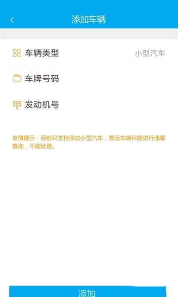 好该软件,点击添加车辆选择好自己的车型,输入车牌号码;