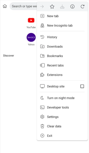 准备工作完成后,打开kiwibrowser,点击右上角的三个点。