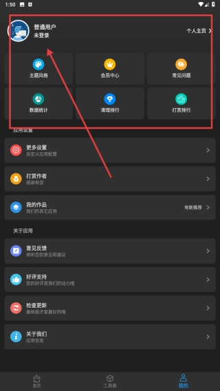 3、打开我的页面,查看个人信息、数据统计等,管理会员权益、反馈应用问题,点击登录。