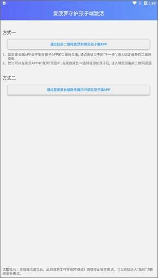 1. 在完成软件的下载与安装操作之后,通过扫描家长端App的二维码来实现绑定激活。