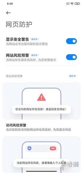 5、关闭“显示安全警告”和“网站风险预警”功能即可。