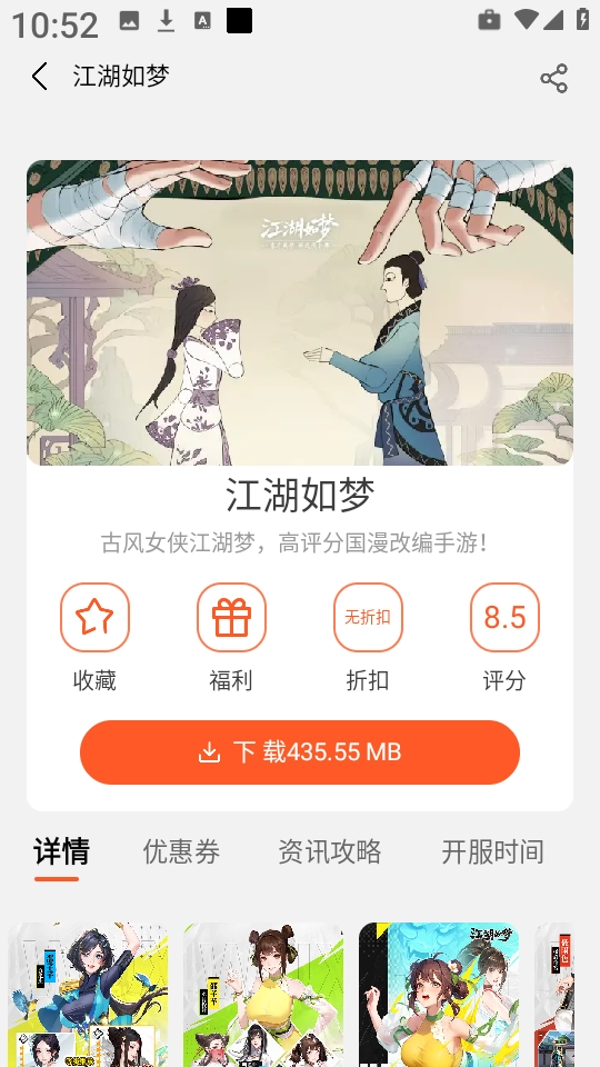 4、任意选择一款游戏,这里小编以“江湖如梦”游戏为例,直接点击“下载”即可。