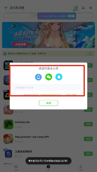 2、进入软件后,选择一个登录方式进行登录。