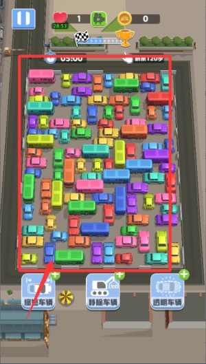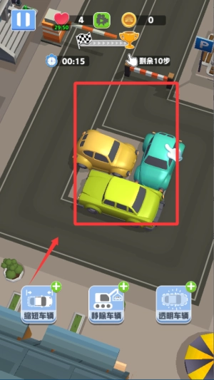 1、开始游戏后先看清楚地图上所有车辆的位置,找到被堵住的那辆,再一步步挪开挡路的车,腾出通道。