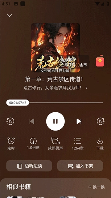 3、在听书页面点击播放即可
