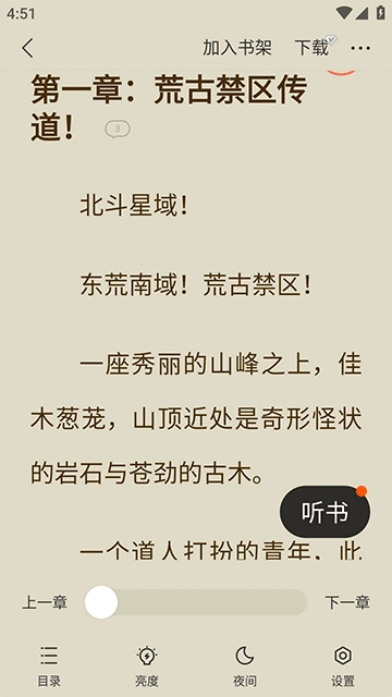 2、轻点屏幕,唤出菜单栏,点击“听书”
