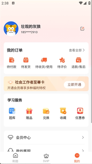 4. 点击页面下方的‘我的’,即可看到我的订单、学习服务等功能。
