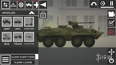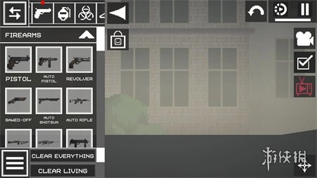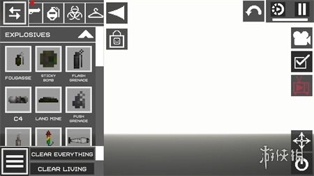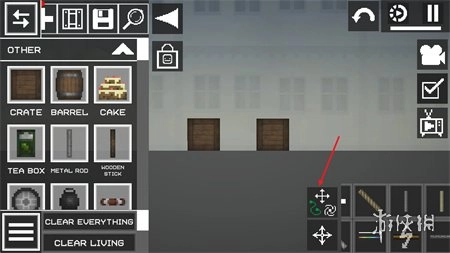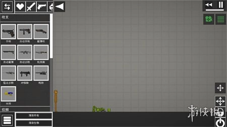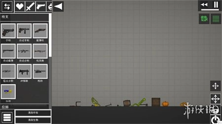 2、当你进入游戏地图,在界面左侧能看到各类选项,像添加人物、武器、道具之类。点击选中这些物品,然后拖动,就能把它们放置到游戏场景里。