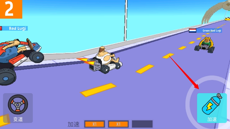 2、利用赛道道具箱获取炸弹、加速器等特殊装备。