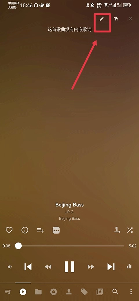 2、若显示这首歌曲没有内嵌歌词,请点击右上角笔的图标
