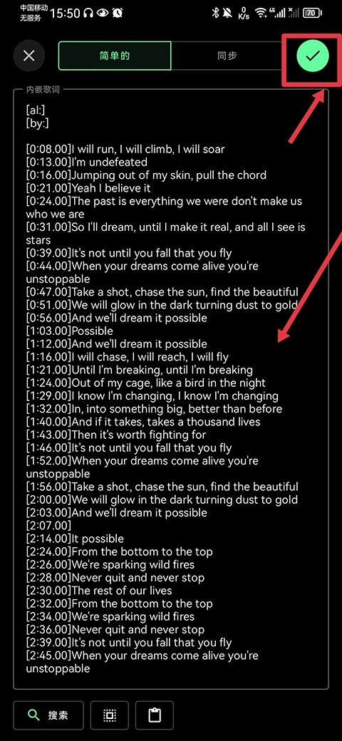 3、进入之后,你既能够选择自行编辑歌词内容,也可以点击左下角的搜索按钮,跳转至浏览器。