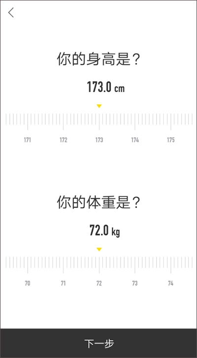 2、账号注册完成后,开始完善自己的信息:性别、身高、体重