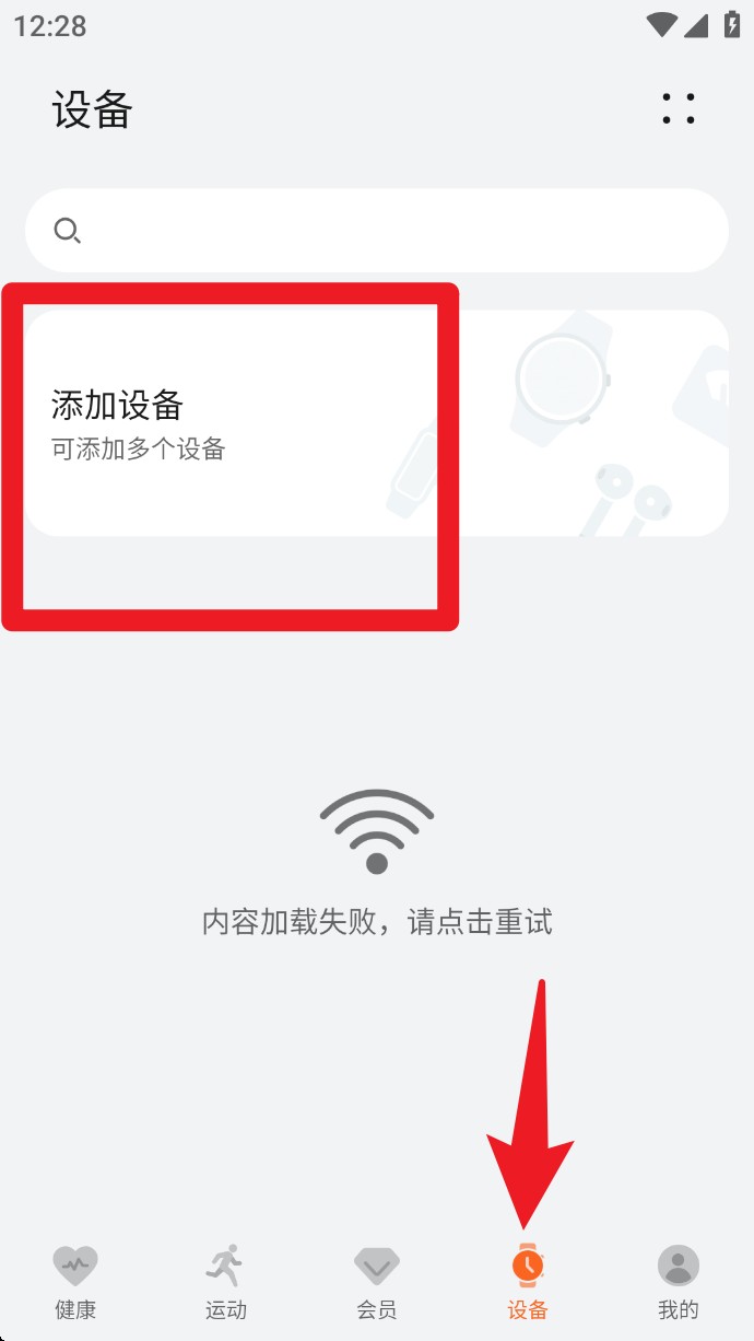 4. 切换至“设备”页面,点击“添加设备”即可绑定华为手表、手环等智能穿戴设备,实现同步记录与提醒功能。