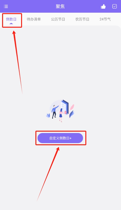 1、打开聚焦倒数日记录软件,在首页倒数日界面,点击底部的加号就能开始添加新事项。