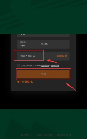 3、将收到的验证码填写,然后点击注册即可。