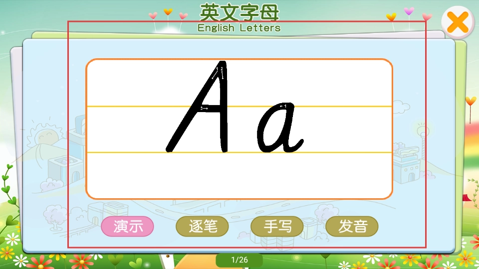 1. 轻点英文字母,即可进入字母学习页面。