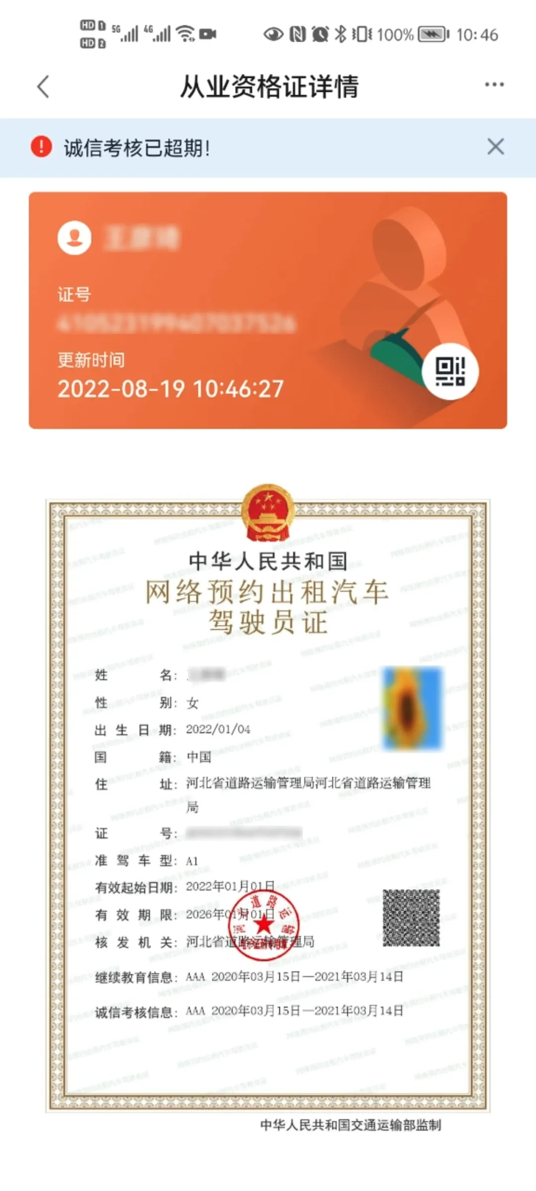 点击我的从业资格证对应的证照,查看证照详情,点击对应证照图片可以放大查看