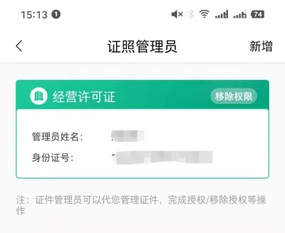 点击“证照管理员”,能够查看以及新增相应的证照管理员。