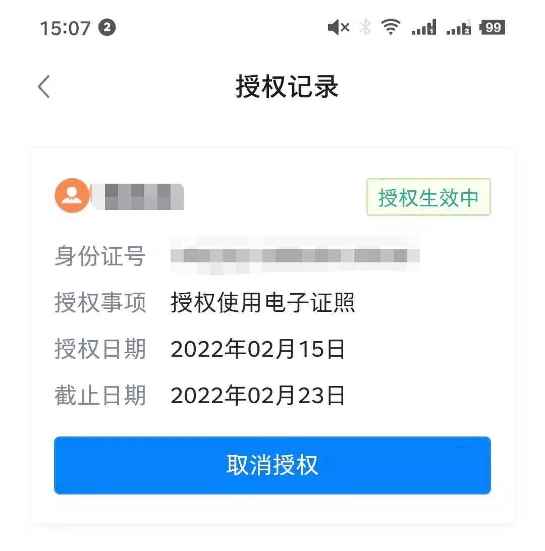 姓名、身份证、授权日期、授权事项给其他用户进行证照授权。