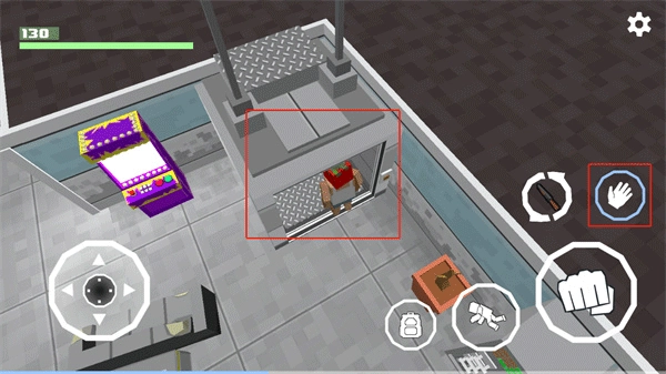 2. 走进电梯,接着按下游戏界面右侧的小手按钮,这样就能到达外面。