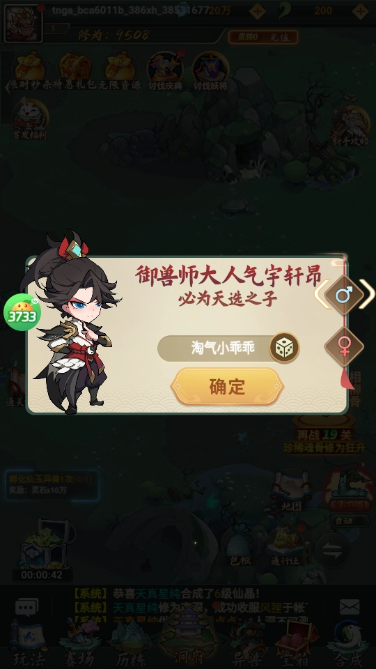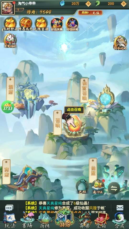 2、上线福利:创建角色即可获得异兽·天马*1、仙玉*4000、6资质异兽箱、橙色魂骨箱*1、高级异兽蛋*1。