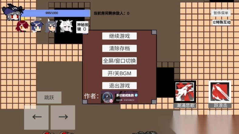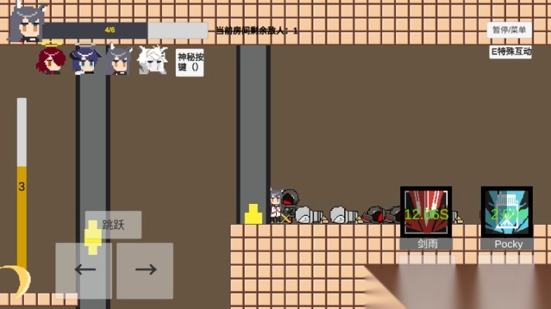 1、人物的基本移动方式包括左下方的箭头↔以及跳跃。