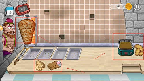 2、轻松制作各种沙威玛卷饼搭配,凭借食材组合的变化,能完成多样任务,获取大量金币财富,助力整体建设。