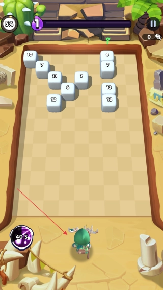 2、观察砖块上的数字,优先攻击能快速消除或对整体布局有利的砖块,留意左下角技能冷却时间40s,合理使用技能。