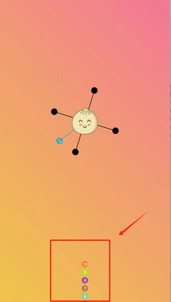 2、观察笑脸包子,它伸出线条连接着数字圈,在其底部有6 - 10的数字彩圈,推测这应该是用于选择难度的设置。