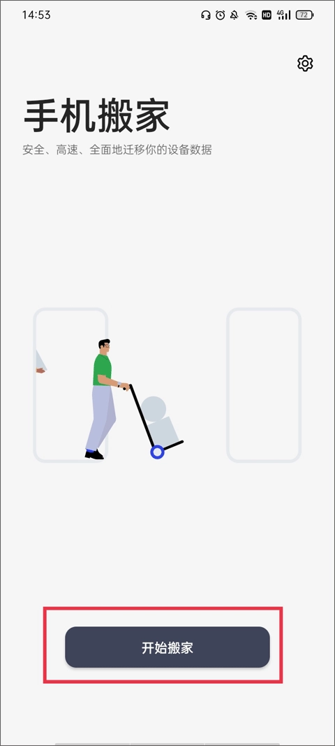 1、打开进入到主系统页面,点击下方唯一的按钮“开始搬家”。