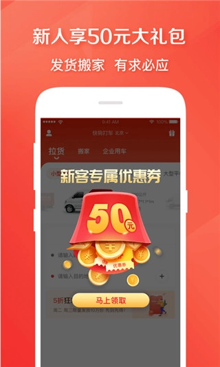 快狗打车(曾用名58速运)是一款专注于拉货搬家的生活服务软件。新人用户登录即可领取超多好礼。当您有拉货、搬家等需求时,在线下单超便捷。平台车型丰富多样,价格清晰透明。师傅会在线极速接单,无需长时间等待,您还能查看师傅相关信息,用得安心。此外,平台还提供搬运服务,24小时随时接单,为您带来省心省力的服务体验,从此搬家不再发愁。