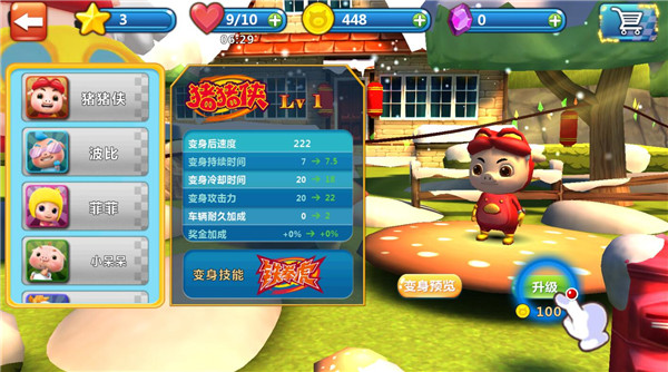 猪猪侠百变飞车凭借其创新的变身系统、高度还原的动漫场景和有趣的关卡设计,在动漫改编的赛车游戏中脱颖而出,为猪猪侠的粉丝以及赛车游戏爱好者提供了既快乐又刺激的游戏体验,深受小朋友和年轻玩家的喜爱。在游戏中,玩家需要巧妙地使用漂移技术和各种道具来超越对手并冲向终点,同时还能通过完成任务和赢得比赛来解锁新的赛车和角色装扮,让玩家能够沉浸在猪猪侠动画中的速度与激情之中。