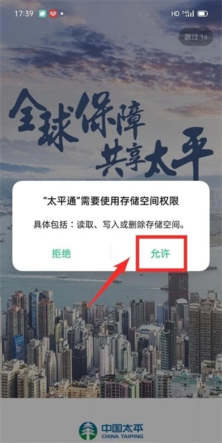 存储空间权限,点击允许