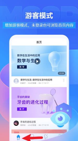 1、打开app,在“游客模式”下,无需注册或登录账号也可直接进入首页并浏览精选学习内容。