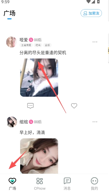 广场上有不少用户会在这里分享发布照片,你可以挑选自己心仪的男生女生类型,通过留言来进行交流互动。