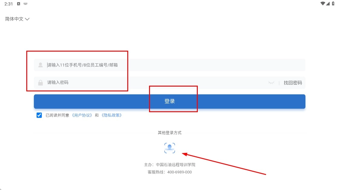 也可以选择人脸识别登录的方式,点击【点击人脸识别-功能按钮】完成人脸验证后即可登录。