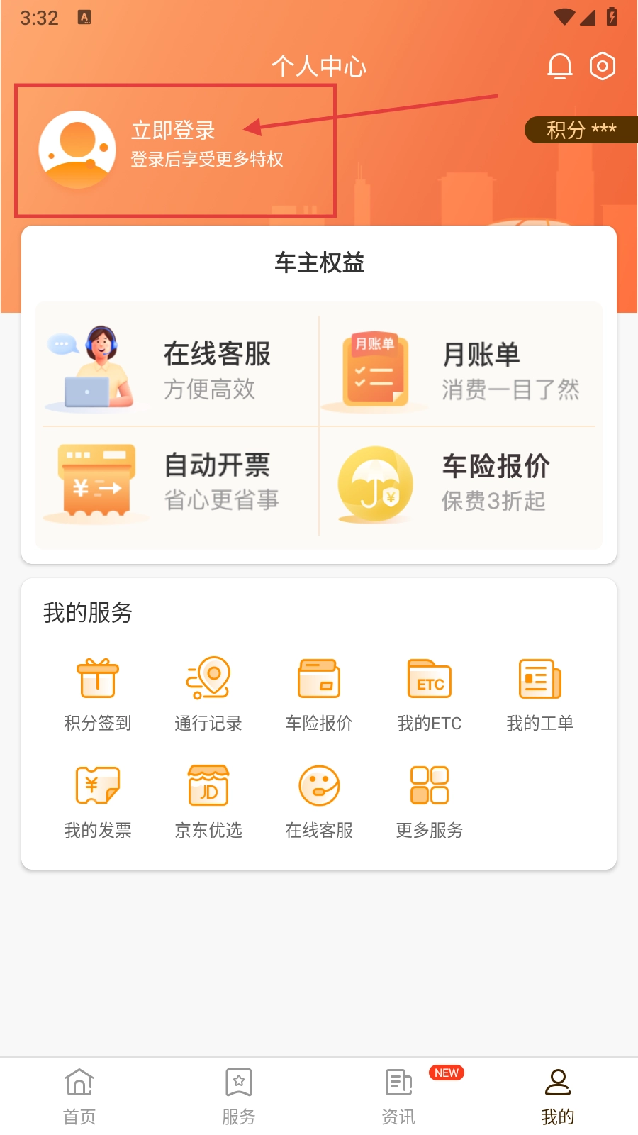在个人中心页面,点击【立即登录】入口,进入登录界面后,您可以选择登录已有账号,也可以进行新账号的注册操作。