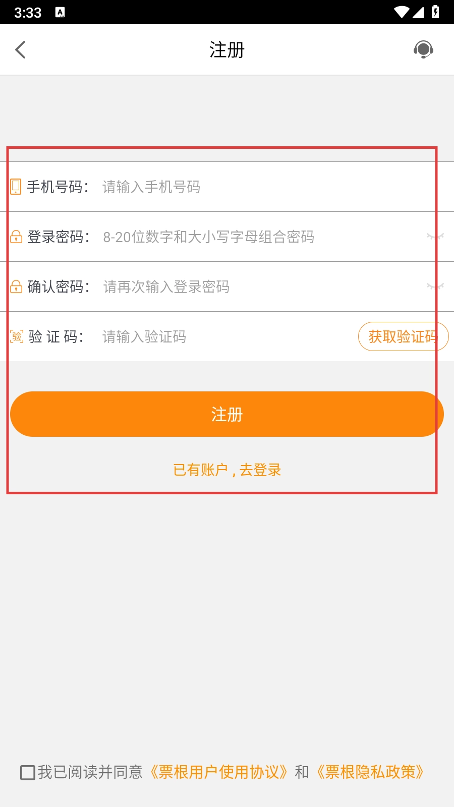 注册时,请依次输入手机号码、登录密码和确认密码,随后点击【获取验证码】按钮并输入收到的验证码,最后点击【注册】按钮,即可完成整个注册流程。