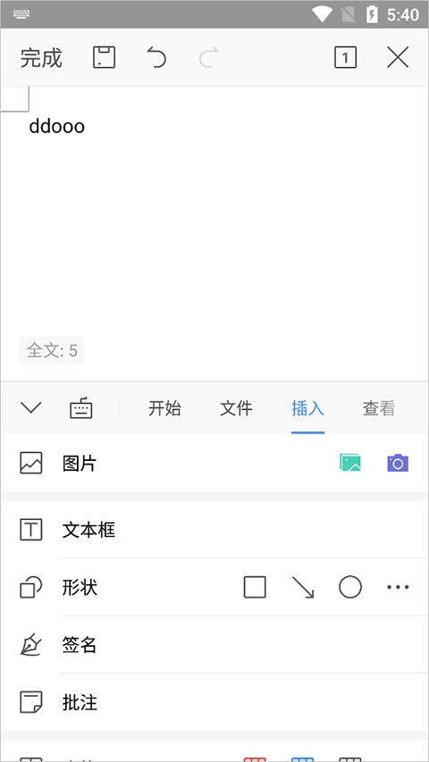 4、而在插入选项卡中,支持用户插入各种组件,例如:图片、文本框、形状、表格、空白页以及各种附件等等。