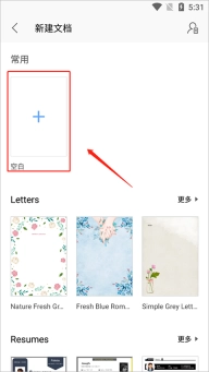 3、来到新建文档界面后,点击常用下方的空白文档即可创建一个空白文档,如果想要使用wps office预设样式,那么下滑找到并点击自己心仪的样式即可,
