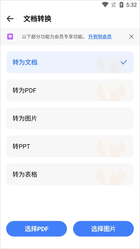 3、在“文档转换”页面可以选择自己需要转换的格式。